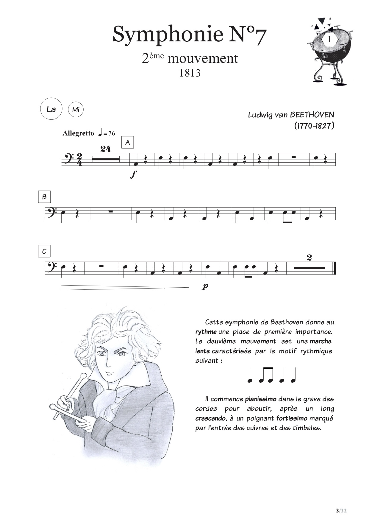 Le premier contact avec un nouvel instrument est un moment important pour un élève. J’aime beaucoup l’idée que son premier morceau soit d’un compositeur comme Beethoven ou Mozart. La timbale est essentiellement un instrument d’orchestre. Il convient donc de familiariser le plus tôt possible les élèves avec son répertoire.